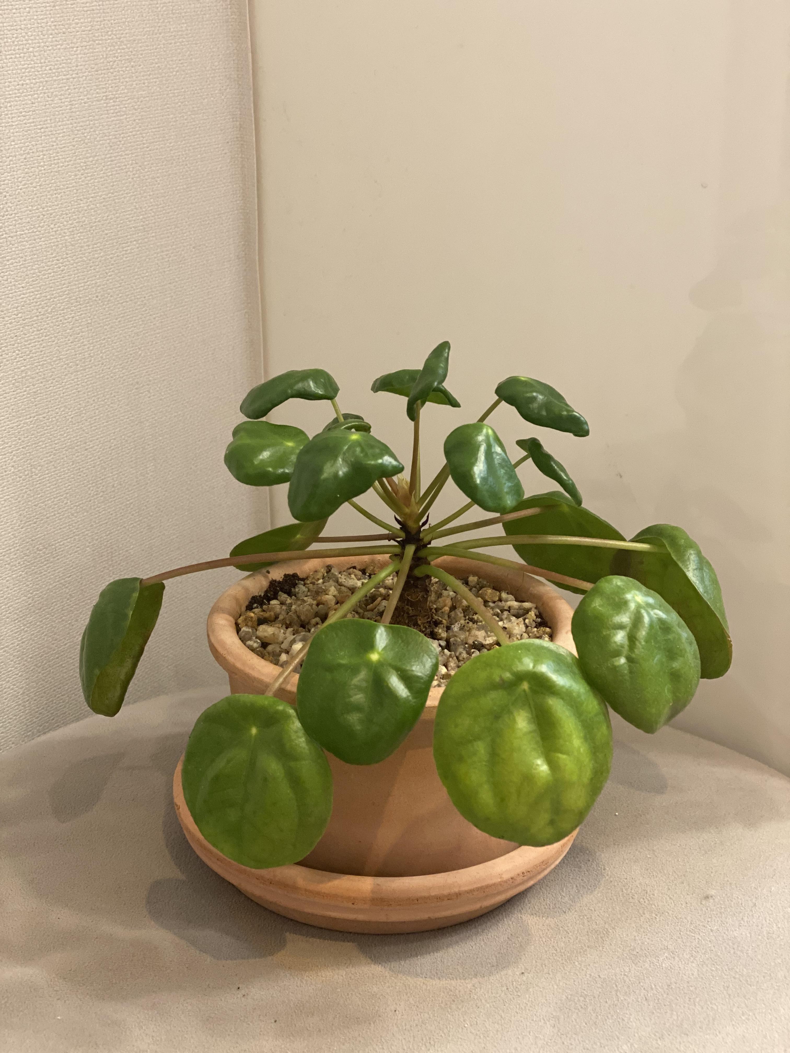 야자수같은 모양으로 자리잡은 필레아페페입니다. 원래는 줄기만 몇개 나있던 귀여운모습이었는데 계속계속 작은잎이 나오다 보니까 이렇게 모양이 바뀌더라구요. 이게 맞는 모습으로 자라고 있는건지는 모르겠습니다만 계속 잘 키워보겠습니다.